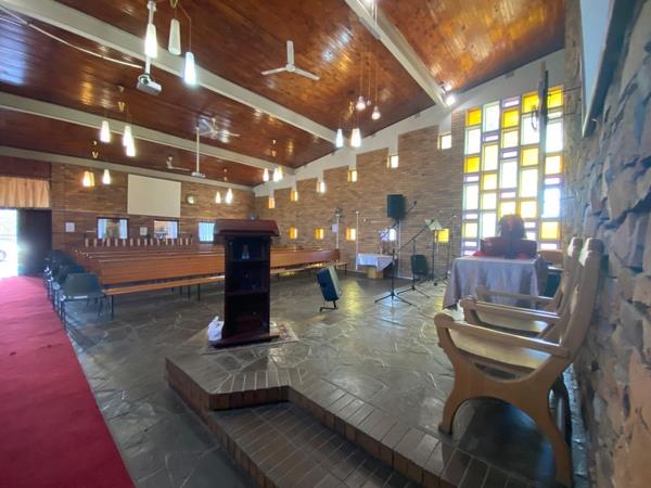 The church comfortably accommodates around 100 congregants, making it ideal for a growing ministry, community organisation, or a visionary redevelopment project. A highlight of the property is its striking feature wall, constructed from large stones believed to have been brought from Pniel a historic German missionary settlement near Barkly West adding character and historical significance to the structure.