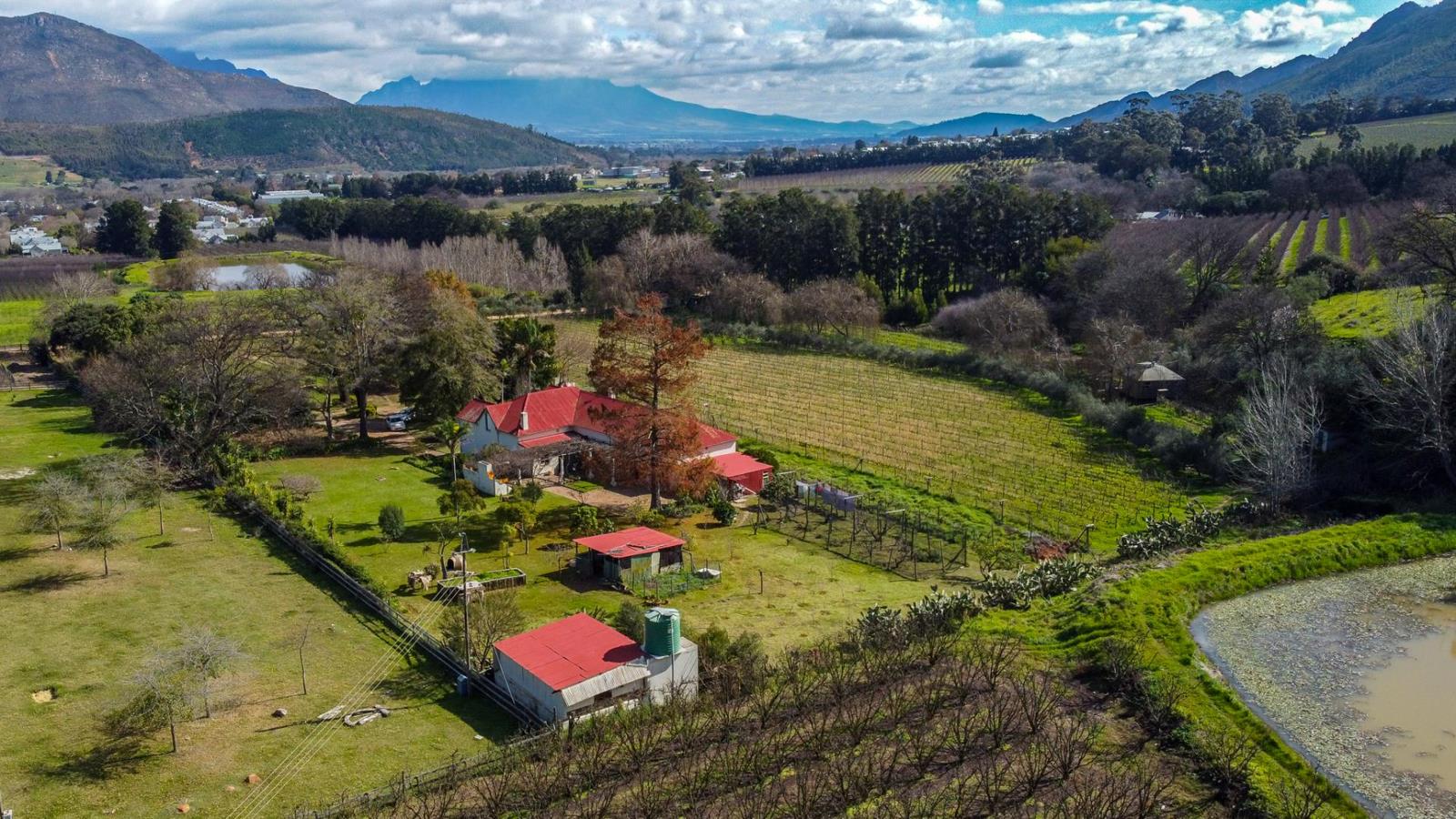Scattered across the farm are several charming heritage buildings, including two one-bedroom guest cottages and a luxury glamping tent with a wood-fired hot tubideal for boutique hospitality or rental income. The elevated koppie (hill) offers sweeping views over the vineyards and distant mountain peaks, enhancing the sense of seclusion and magic.