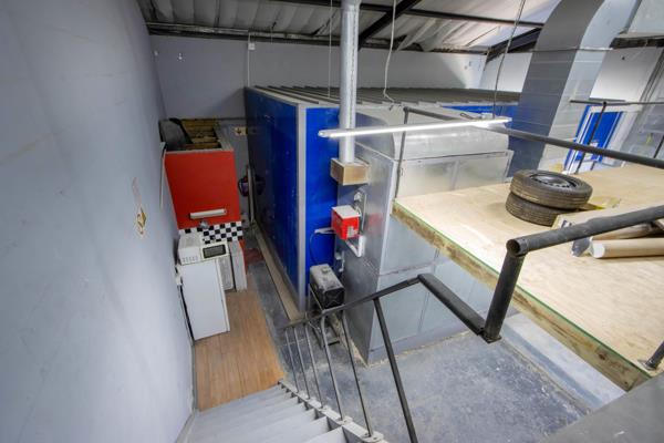 Reception & Office Space A welcoming reception area with an adjacent storeroom, ideal for managing parts and inventory.