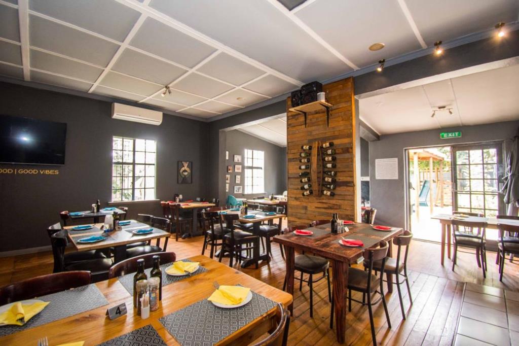 Wood fired pizza oven in dining area.