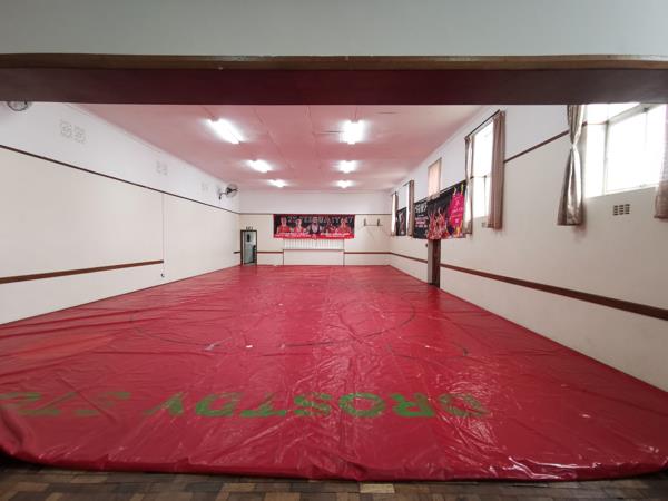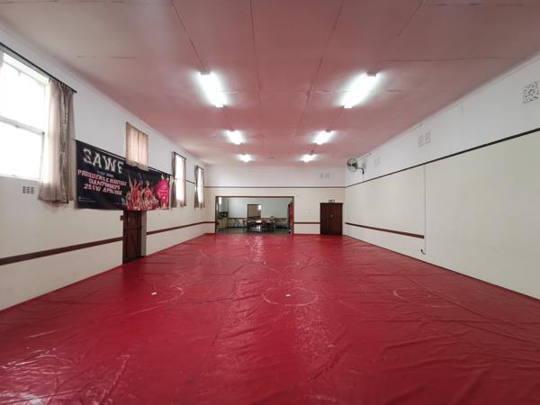 The property also features a large open area that can be utilized for various purposes, such as a communal space, dining area, or office setup. Adjacent to this space is a functional kitchen, as well as separate ladies and gentlemens restrooms and an additional storeroom that provides ample storage space, ensuring convenience and comfort for all occupants or guests.