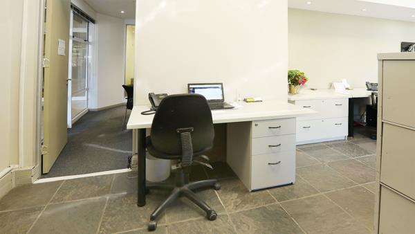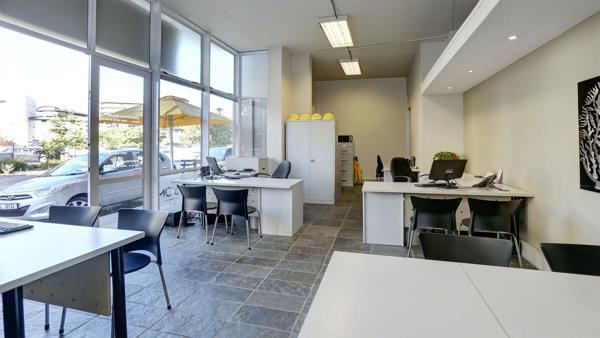 This 169m2 office/retail consists out of a front section- 50m2 middle section- 103m2 and a back section- 16m2, with versatile workspace. The unit is equipped with a kitchenette and bathroom facilities. The building is surrounded with sufficient air conditioning and security. Furniture is optional.