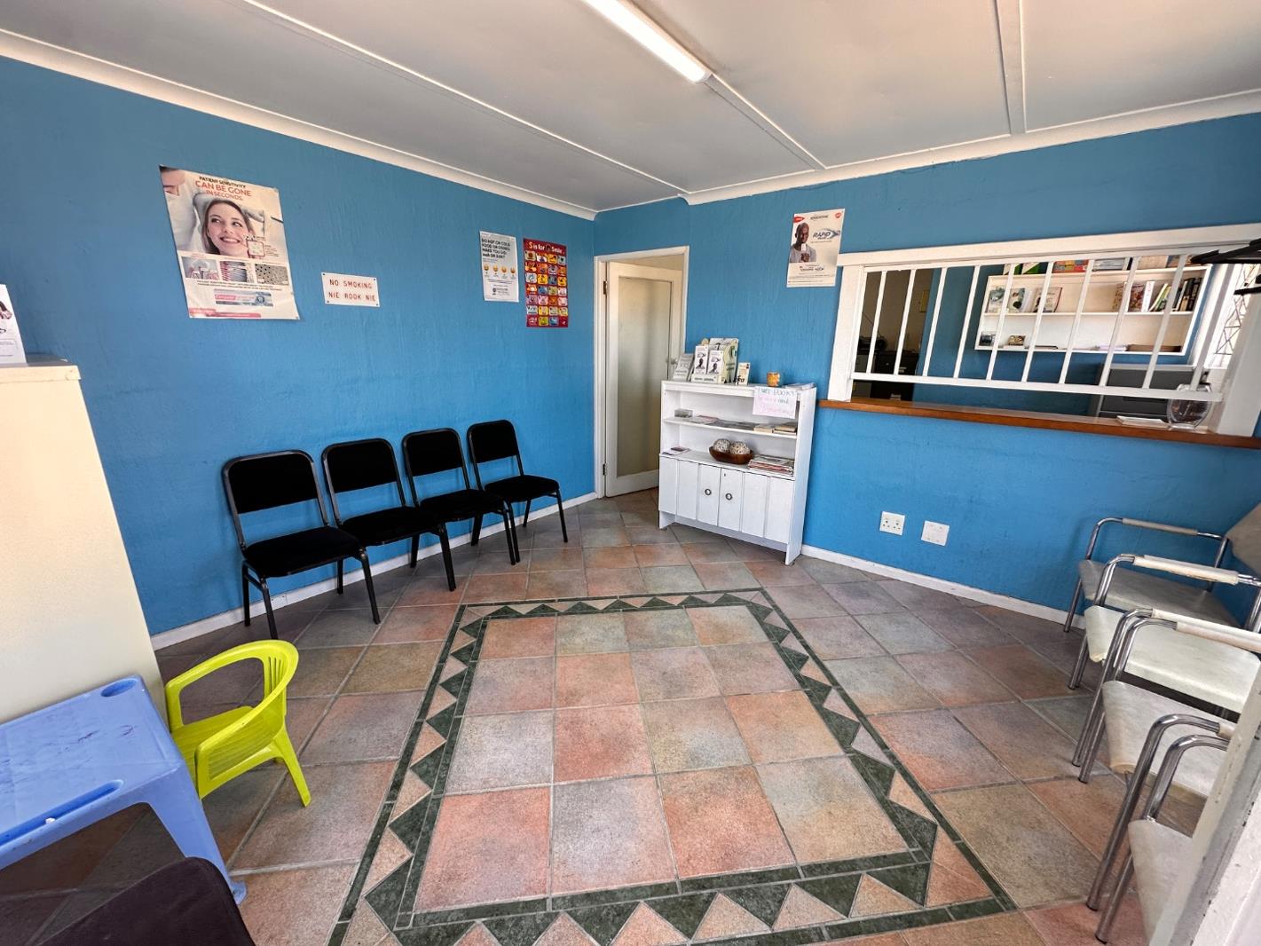 The interior features a functional layout designed for commercial use, including a welcoming reception area with a counter and waiting space, multiple consultation or office rooms, and a dedicated bathroom. One room is specifically equipped as a dental examination room with essential fixtures, showcasing the property''s adaptability for medical or service-oriented businesses. While the spaces are functional, they present an opportunity for a modern refresh to align with new branding or operational needs.