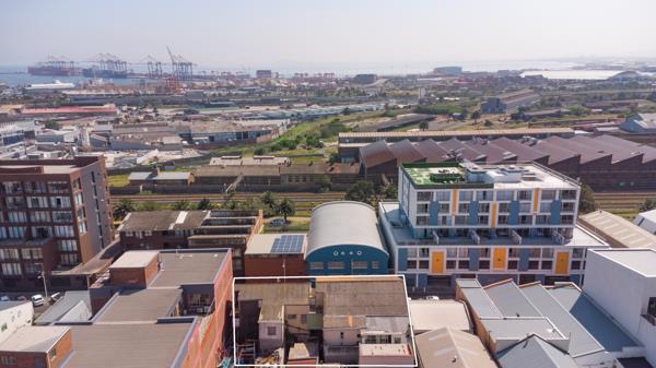 The 2nd level is a residential apartment. It is +/110sqm and has 2.5 bedrooms, a bathroom, and a large open-plan living, dining, and kitchen area.