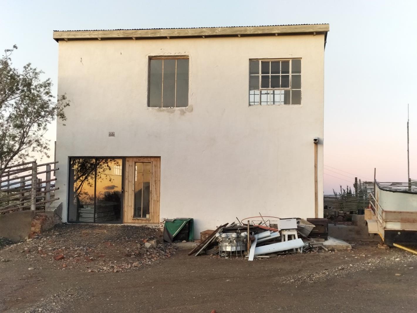 A commercial property located on the outskirts of the town. This versatile space can be used as a workshop or studio, with lovely views of the Swartberg to the south and Skapies road with the sunset, to the east.
