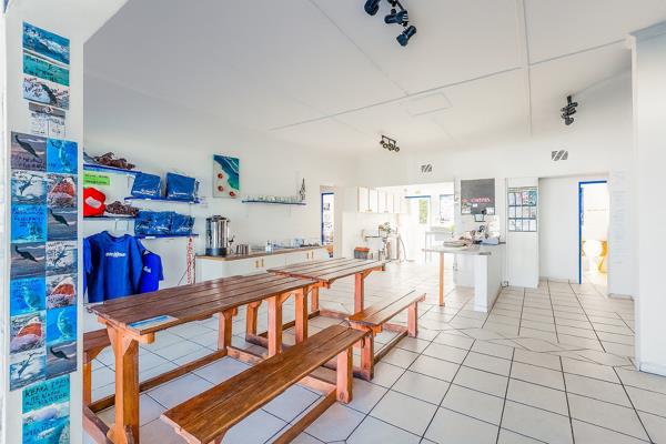 SOLE Mandate. An excellent opportunity to acquire this commercial property (Business zone 3) on a large corner stand located just 150 metres from Kleinbaai harbour in a sought after area. This property is currently being utilised by a Shark cage diving company. The dwelling comprises an enclosed stoep with a built in braai, an large open reception area with a kitchen, two store rooms, office, 3 bathrooms and a laundry. The property includes a double garage with open parking to the side and rear.