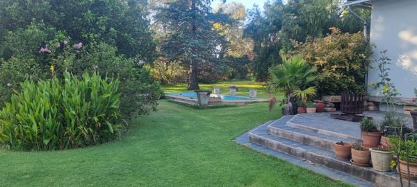 Infrastructure includes a charming and well-maintained farmhouse, a welcoming entertainment stoep, swimming pool, landscaped gardens, expansive lawns, and shady mature trees, creating an inviting, serene homestead. Natural game, including kudu and other antelope, move freely across the property, enhancing its potential for eco-tourism or private retreat development.