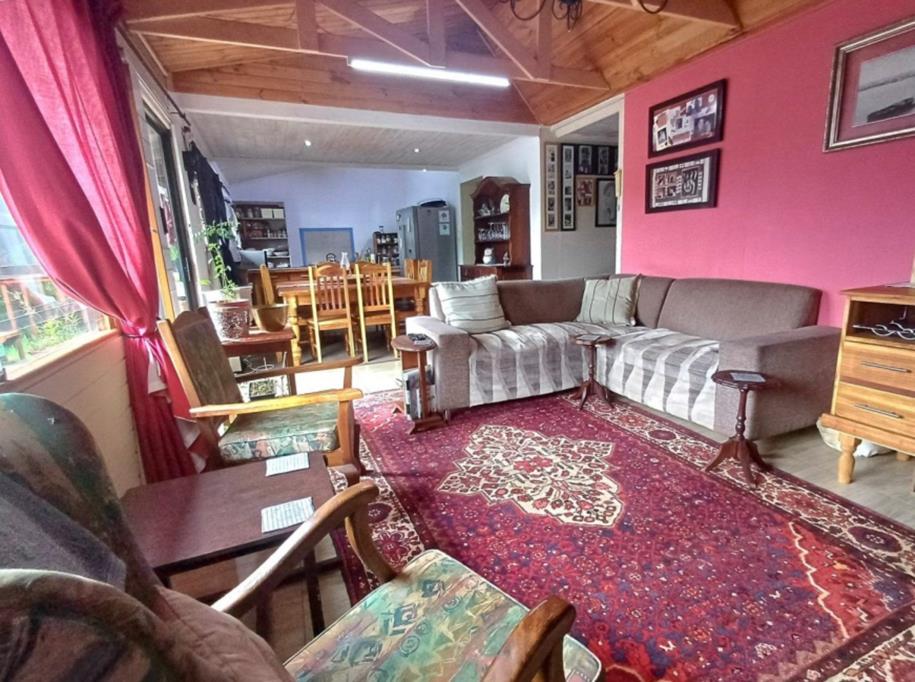 The main home is warm and inviting, featuring 3 bedrooms, 2 bathrooms main en-suite, and a spacious open-plan living area with a cosy enclosed fireplace. The living spaces flow effortlessly onto a large wooden deck, where uninterrupted mountain views create a truly special setting.