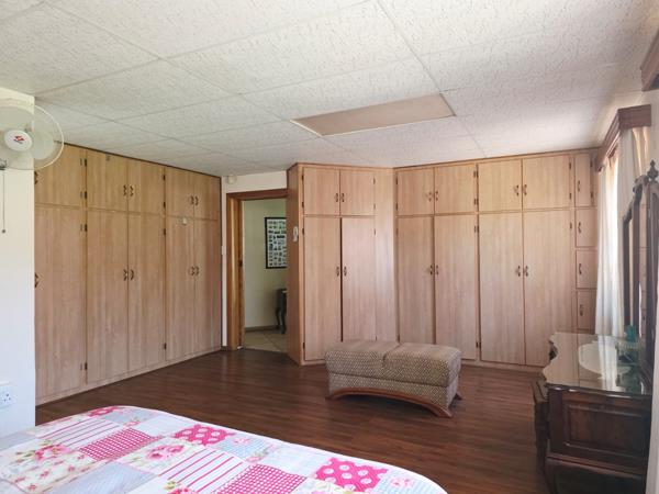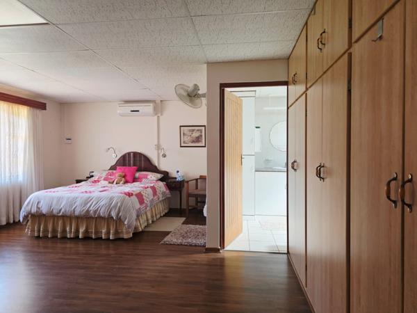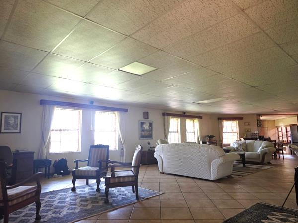 Large open-plan living areas, dining room, kitchen with scullery, study corner, inviting patio, and double garage with electronic doors. Ideal as a boutique guesthouse or multi-family home.