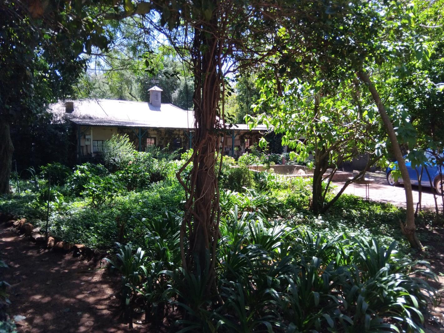 The property offers a tropical atmosphere, adorned with various avocado tree species and other exotic plants in a meticulously maintained garden. An irrigation system is in place to support the lush greenery.