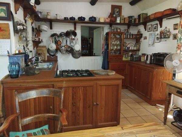 oSpacious open-plan kitchen featuring a gas stove and a walk-in pantry cupboard, seamlessly connected to the dining area.