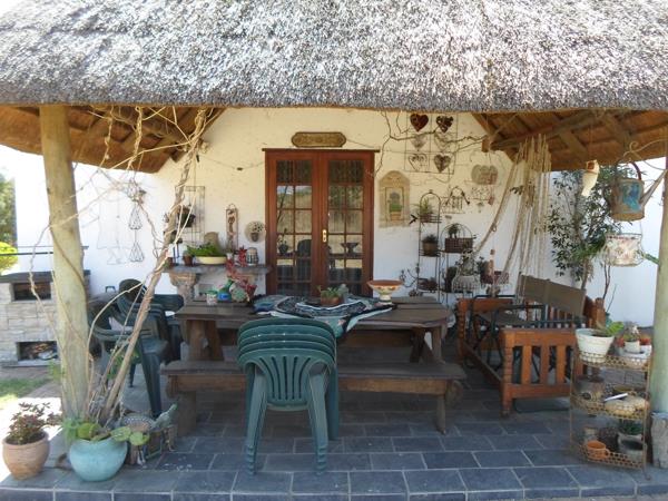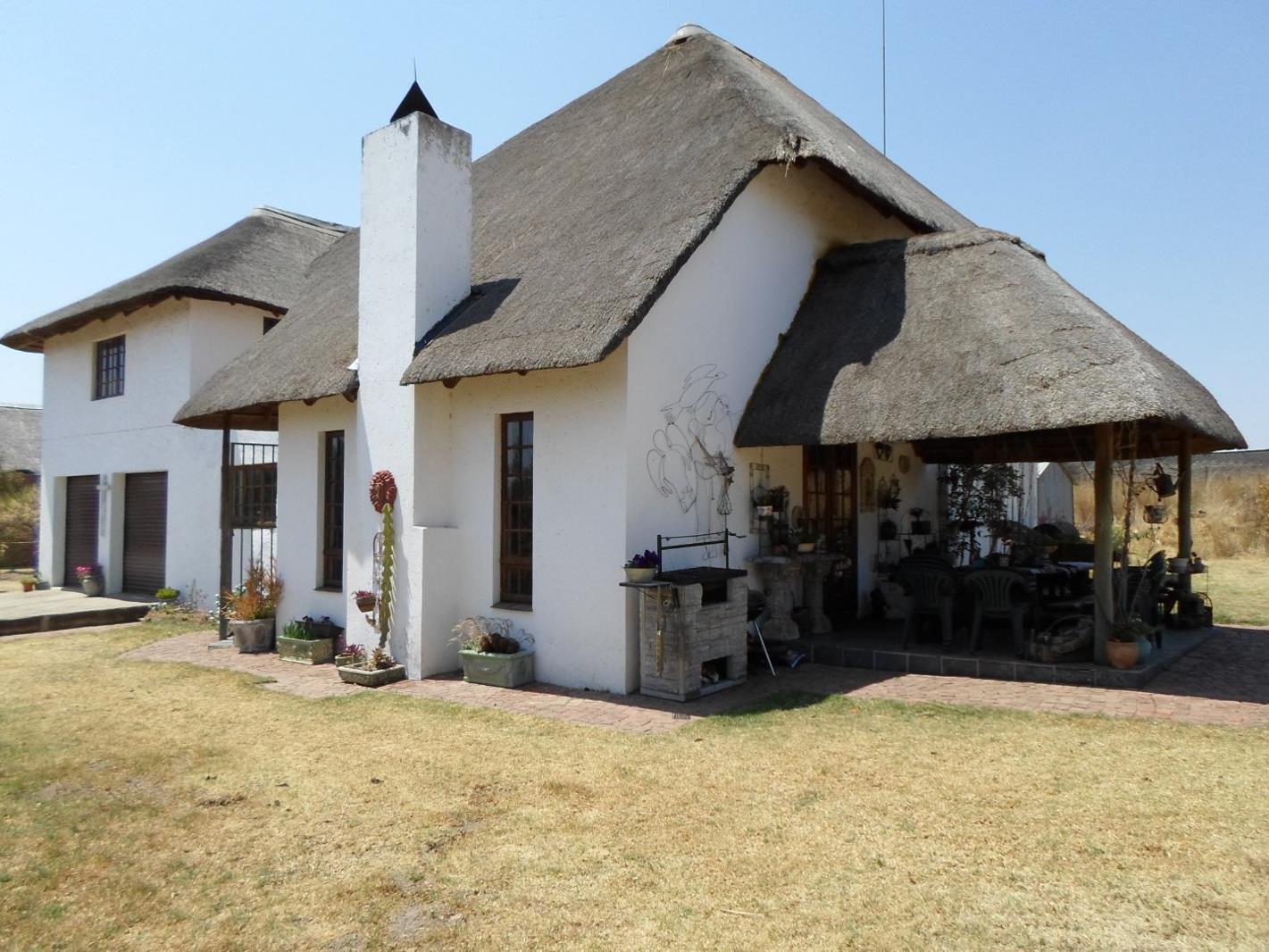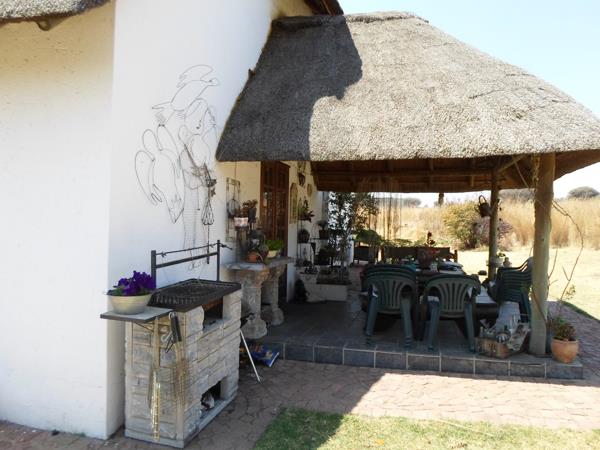 This beautiful farm style thatch house on a 1 hectare 10,000 sqm stand in a security village offers the following: