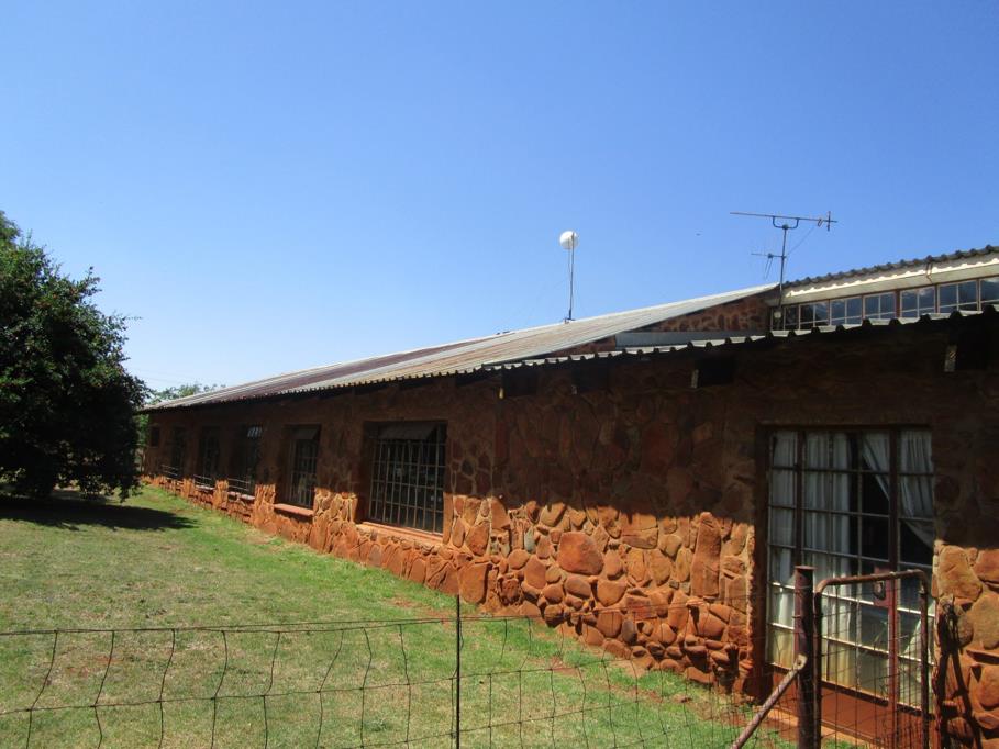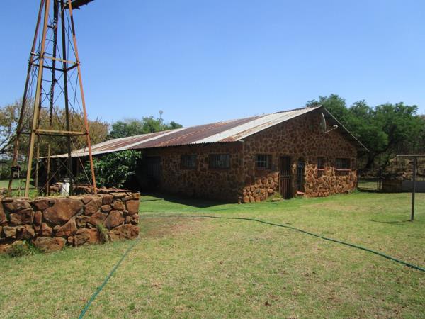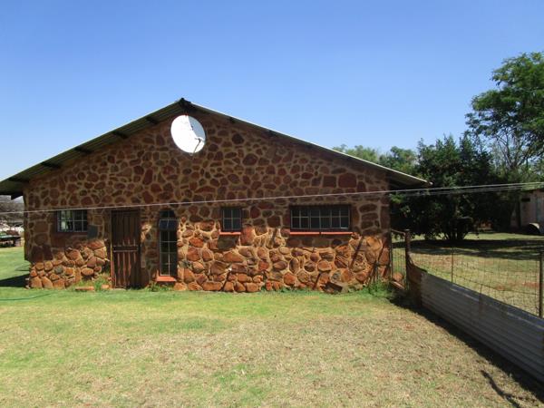 Beautiful stone-built 4-bedroom farmhouse with en-suite in main bedroom, second bathroom with shower, lounge, dining and family rooms, study, kitchen with built-in cupboards, laundry, open patio, guest toilet, and 2 geysers.
