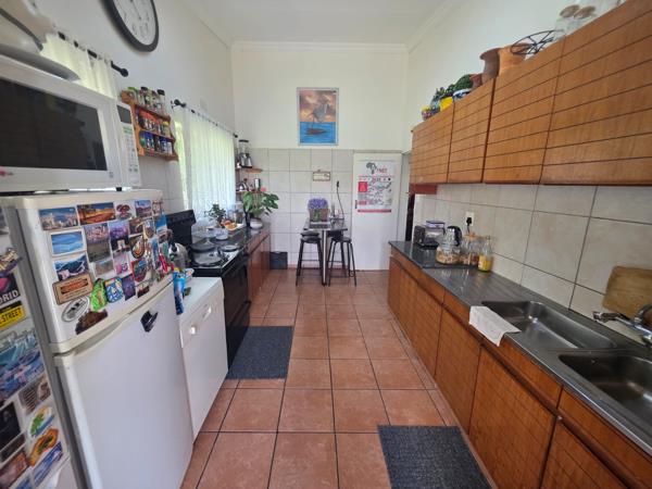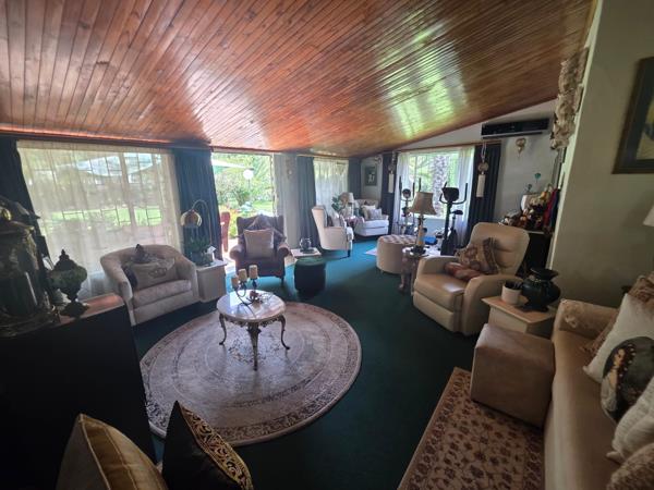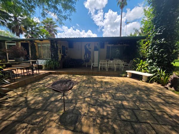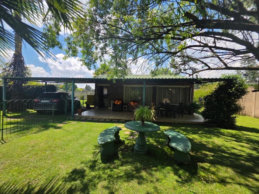 Nestled on a spacious farmsmall holding, this remarkable estate features a main residence offering three generous bedrooms, two well-appointed bathrooms, and two inviting lounges - one designed in an open-plan style that seamlessly integrates with the dining area. The dedicated study, equipped with built-in cupboards, provides an ideal workspace, while the surrounding gardens, nourished by a functional borehole, create a picturesque outdoor sanctuary.