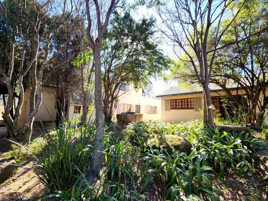 Upstairs main bedroom with en-suite, built-in cupboards & large balcony with views of the gardens and Magaliesberg mountains