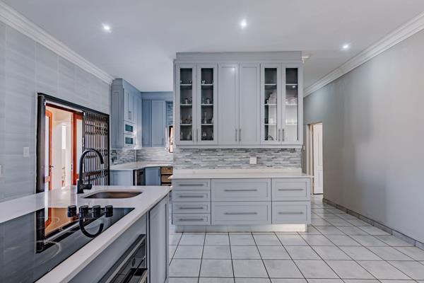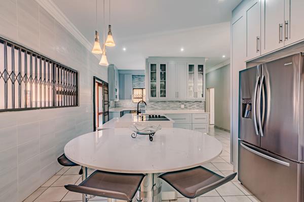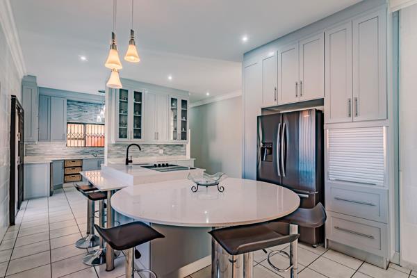 There are two spacious lounges, one upstairs and one downstairs, both with sliding doors that open out to a large patio area, which includes a built-in braai - ideal for entertaining guests or relaxing with family. The home''s heart is the beautifully finished open-plan kitchen, which seamlessly flows into the dining area, making it both practical and inviting.