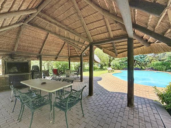 The landscaped garden surrounds the homestead with beautiful mature trees, supported by a borehole and limited access to municipal water out of the channel feeding a reservoir, ensuring reliable water for the garden and household.