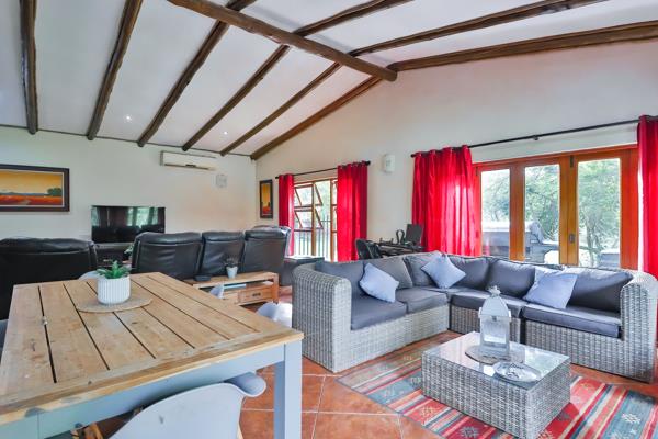 The main residence is a spacious 5 bedroom home with a flowing openplan lounge, kitchen and dining area, perfect for family living and entertaining. Adjacent to the main house is a stylish, modern bachelor flat, ideal for guests, extended family or rental income. Both overlook a sparkling swimming pool and inviting boma area, creating a private outdoor oasis for relaxed entertaining.