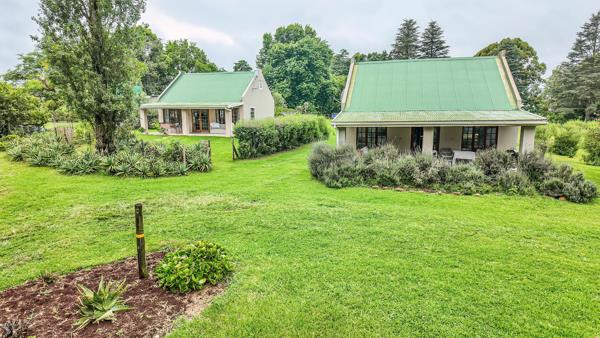 The thatched main house is perfectly situated away from the cottages and farmhouse. The charming home offers two bedrooms and two bathrooms, an open plan kitchen, lounge, dining area leading into an expansive entertainment area, overlooking the lawns and garden. The office can also be a converted to a third bedroom if required
