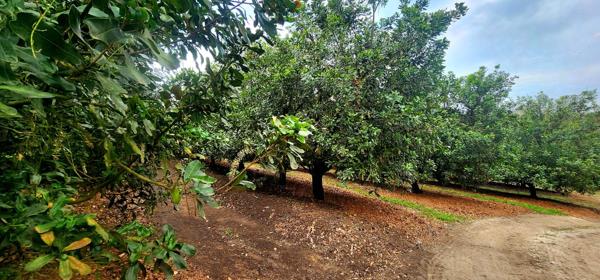 Located in Paddock, 20km from Port Shepstone and 2km from the Oribi Gorge Nature Reserve, set on gently sloping land with 2 large dams totaling 85,000m3. These dams supply the farm via a water purification plant. The farm is fully game fenced with concrete strips along the bottom (1,2m Bonnox, 6 strands Barbed wire and 20 strands electrified) All the houses are secured with electric fencing as well. All trees are under micro irrigation, linked to fertigation, all operated remotely. The 11,3ha of trees are 788, 741 and 816 and Beaumont cultivars ranging in age from 6 years (1,3ha) to between 20 and 24 years (10ha) planted at a density of 400 trees per ha, with a constant supply over the last 8 years of 5 tons per ha. to the factory wet-in-shell.