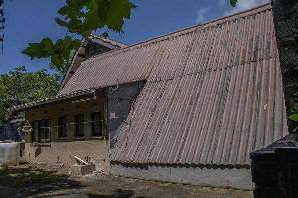The 3 bedroom, 2 bathroom A-frame house need attention to be restored to its former beauty. The outbuildings are a 2 bedroom 1 bathroom flat let, servant quarters, a storeroom and 3 lock up garages. All need attention and work. A steel structure once used as a greenhouse, can easily be functioning again. The residence area is fully fenced with an electric fence.