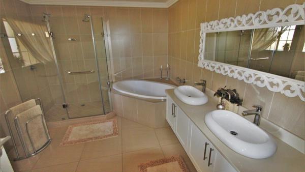Die plaas spog met 5 slaapkamers en 5 en suite-badkamers plus parkeerplek vir 6 .