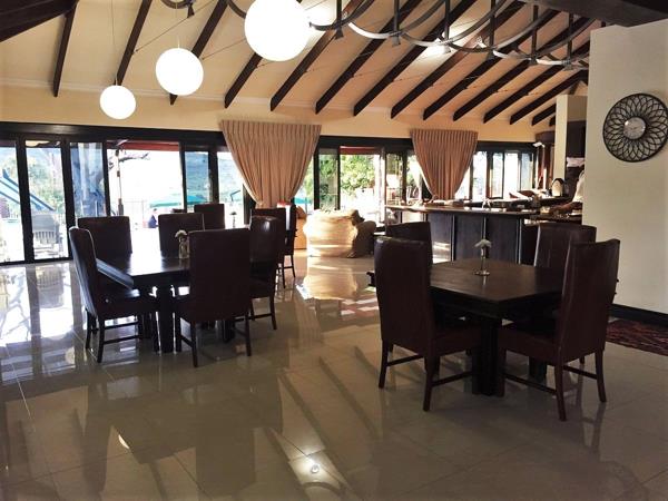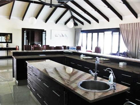 Main lodge fully tiled. Fully equipped Gourmet Kitchen complete with adequate Mahogany Built in Cupboards and Marble Finish Tops.