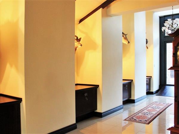 The main lodge is placed midway between the 4 lodges and hosts a reception area which is a double volume framed and glazed foyer with an exhibition of roof-lighted hunting trophies encased on the side wall large dining area baronial chefs kitchen lounge bar and colonial room.