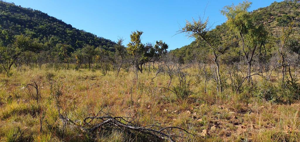 This inner game farm with controlled access boasts the most awesome vistas and an abundance of game animals. The habitat is typical Mixed Bushveld with numerous large bushveld trees. The topography consists of approximately 70 sloping and undulating mountains with several natural springs and large flat savannah bushveld.