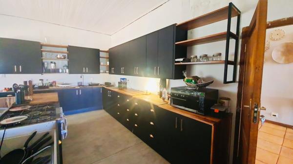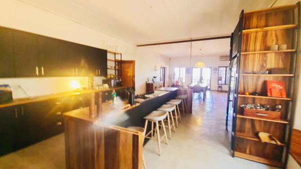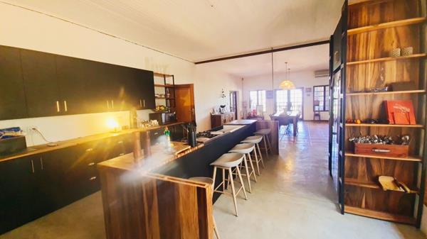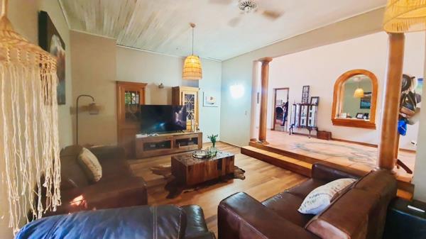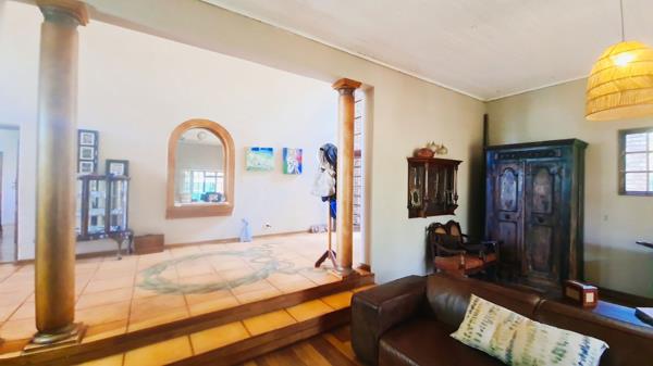 Offering a 600m² home that is entered through a beautiful arched entrance hall with high ceilings, leading to a lounge and dining room on the one side, and a large kitchen, living room and guest bedroom, as well as 4 bedrooms and 3 bathrooms. At the end of this magnificent entrance hall is a large covered and enclosed patio from where views stretch across the valley into the mountains. The main house also has a basement and office storeroom that used to be a double garage.
