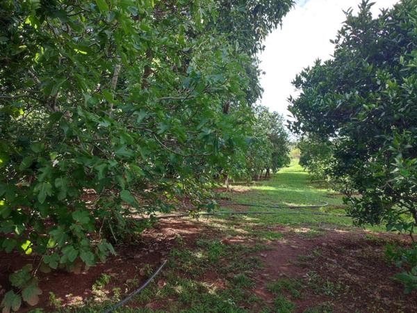 Orchard: A variety of fruit trees including 20 orange trees, 7 avocado trees, 4 nectarine trees, 4 nartjie trees, 6 fig trees, 2 mango trees, and 1 apricot tree.