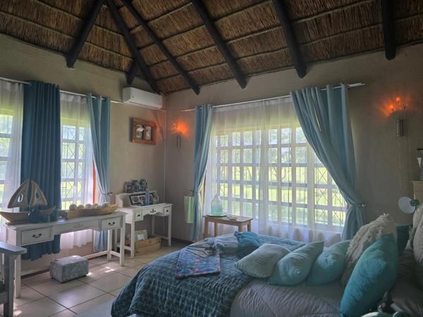 Four serene bedrooms, sunlit living spaces, and an open-plan kitchen set the scene for warm gatherings. Enjoy leisurely afternoons in the braai room, cosy evenings by the built-in bar, and summer days beside the sparkling pool.