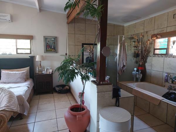 5 Bedroom house with air conditioning and spacious living areas, 3.5 bathrooms two en-suite with shower and bath, one full bathroom and a guest bathroom, study, spacious open plan kitchen with scullery, dining room and lounge with ceiling fans.