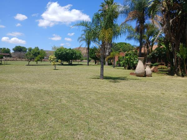 The expansive garden area features an irrigation system, two boreholes, three water tanks with pressure pumps, and three Wendy houses for extra storage or workspace. Theres also a fully equipped butchery room with a cool room, two remote-controlled access gates, and electric fencing for added security.