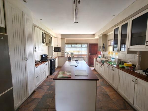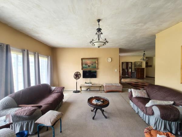 The property features a spacious 348m2 semi-face brick residence with a durable tiled roof, designed to maximize natural light with no fewer than 18 windows, creating a warm and inviting atmosphere throughout. The home boasts three generously sized bedrooms, all fitted with built-in cupboards, and two well-appointed bathrooms, including a main en-suite. The open-plan layout seamlessly connects the lounge, living, and dining areas, making it ideal for comfortable family living and entertaining.
