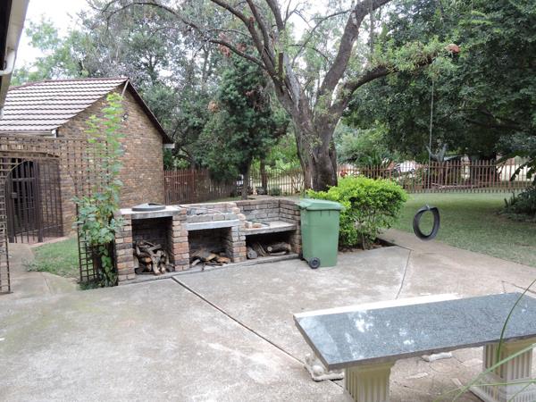 Two patios overlooking large tranquil garden. Built in braai on the one patio.