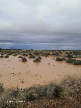 The farm extends over 11848 hectares and is divided into 20 camps, with sufficient crips and water supply to the livestock. There are sufficient kraals for sheep management. Water is plentiful, with eight boreholes fitted with wind pumps, a large ground dam stretching over three kilometres when full, with plenty of bird live including flamingos and wild geese. There are five additional ground dams and eight dams.