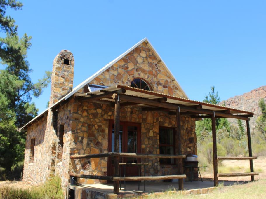 The 42square metre stone cottage consists of a bedroom, bathroom, kitchenette and living area. The spacious stoep is covered by a grape arbour and overlooks the lush garden.