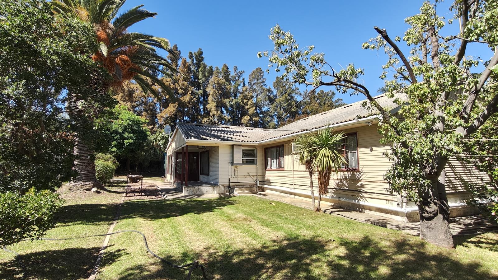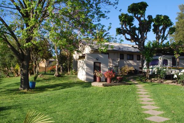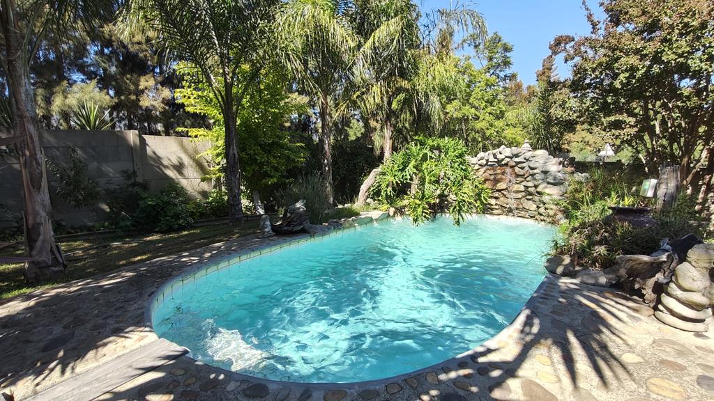 The garden has multiple fruit and nut trees, beautiful swimming pool and an outside braai area. The property has good security with 8 security cameras around the house area. An old laborers cottage situated in the field can be renovated into a guest cottage. Beautiful mountain views all around.