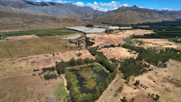 Prospective buyers can build their ideal home on the property, whether seeking to farm commercially or simply enjoy the tranquility of the countryside. The farm features a registered water storage dam with a capacity of 64,000 cubic meters fed by the Breede Gouritz water scheme.