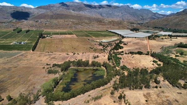 The land is well-suited for fruit cultivation, cattle, horses, lifestyle farming, or tourism, with impressive mountain views providing a picturesque backdrop. Adjacent to the farm is a second, separately available, 25-hectare property with its own dam storage capacity: 25 000 cubic meters and water rights from the Breede Gouritz water scheme. These farms may be purchased individually or combined to offer 66 hectares of arable land.