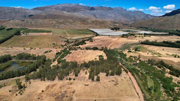 The land is well-suited for fruit cultivation, cattle, horses, lifestyle farming, or tourism, with impressive mountain views providing a picturesque backdrop. Adjacent to the farm is a second, separately available, 41-hectare property with its own dam storage capacity: 64,540 cubic meters and water rights from the Breede Gouritz water scheme. These farms may be purchased individually or combined to offer 66 hectares of arable land.