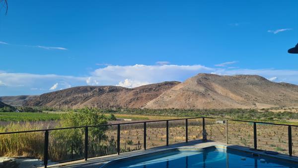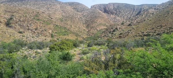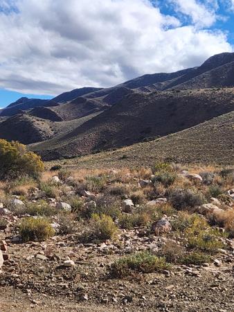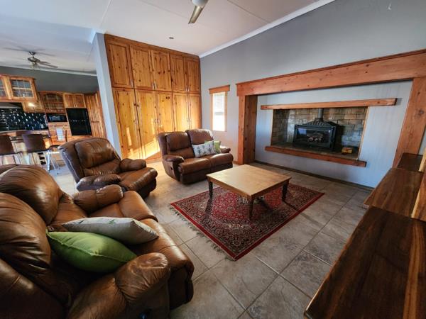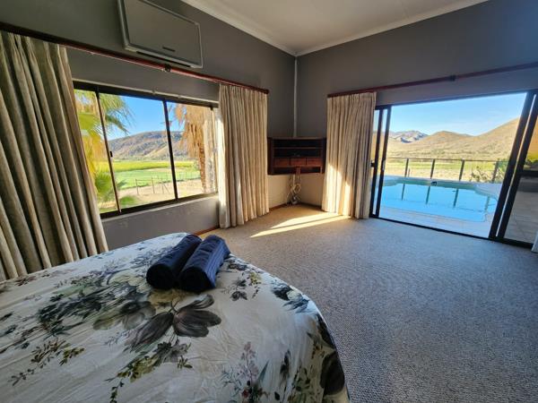 Too young to retire? This lifestyle farm, 17km outside Prince Albert, is for you. You travel on a well maintained gravel road to the farmhouse situated in one corner of the farm. The farm is divided into two camps, with a road running through the mountain and the koppies of the farm. The view from the farmhouse is over the fruit orchards of your neighbour. Kudu and small buck. You can be self-sustaining on the farm. Swimming pool, braai on stoep. Fireplace in open plan living area.