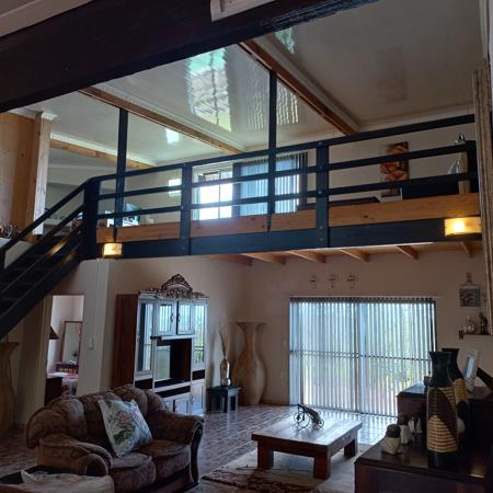 Upstairs loft area with endless possibilities ideal as a home office, TV lounge, or extra bedroom, leading to a balcony with views of the surrounding veld