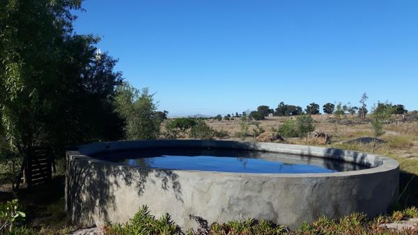Plantation under irrigation: organic, indigenous plantation with Rose Geranium, Cape May and Rosemary for distillation of essential oils 36 olive trees, 4 pecan nut trees and single fig, lemon, nartjie, apricot, loquat and nectarine trees gravity-fed irrigation.