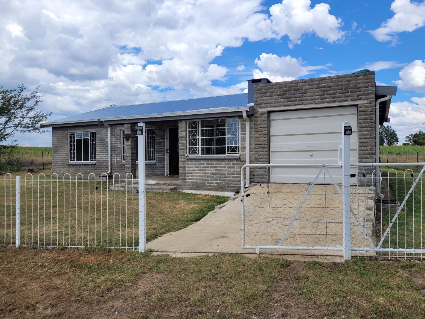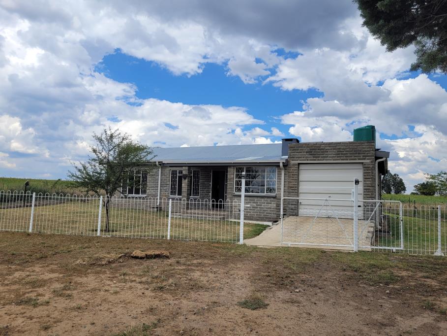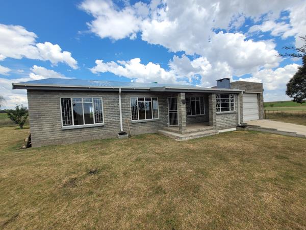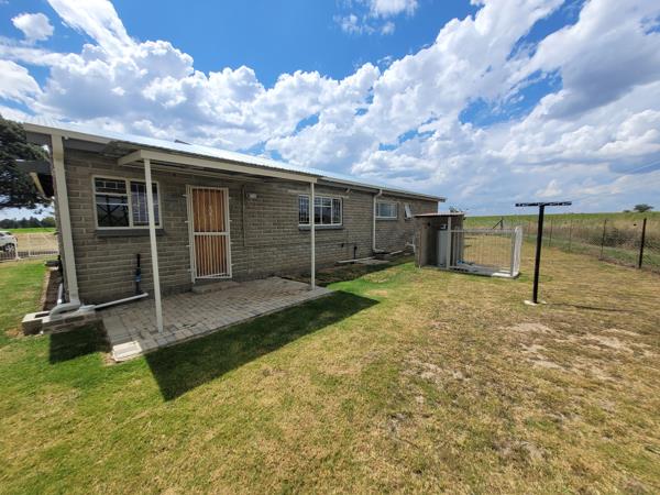 Three bedroom home on a farm, situated 7km from town in the direction of Lindley. Sunny bedrooms with cemcrete flooring, one full bathroom, neatly tiled. Old world style kitchen cupboards with separate scullery with connections for your dishwasher. The garage has extra space for your washing machine as well as lovely shelves for storage. Borehole with water tank. Eskom electricity extra.