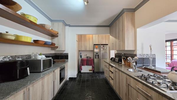 Step outside and youll find an impressive entertainment area featuring a large lapa with a built-in braai and guest toilet perfect for hosting family and friends. The sparkling swimming pool, complete with an outdoor shower connected to hot water, adds a touch of luxury. A wooden shed provides additional storage space.