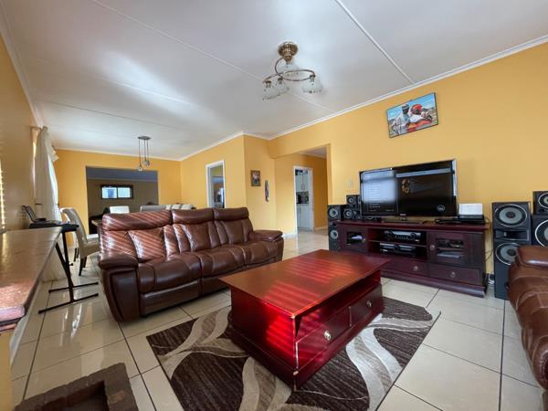 This 3-bedroom house in Amalinda features 2 bathrooms, a lounge, dining area, TV room, kitchen, and a backyard with a swimming pool. Additional features include a bachelor flat, single room flat, double garage, and a large yard.