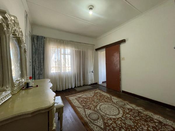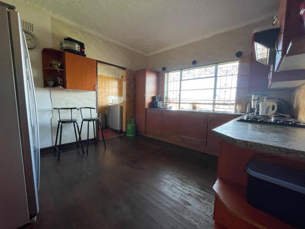 The residence features 4 bedrooms, 2 bathrooms, a kitchen with a scullery, 2 flats sharing one bathroom, and a single garage. It occupies a large plot, offering potential for future expansion