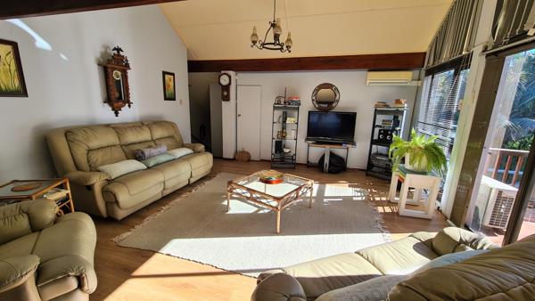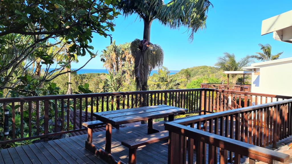 This property certainly has quality, elegance, ambiance and serenity. Main house consists of 4 bedrooms 3 bathrooms, 2 large lounges, DR, attic/study, beautiful long patio with sweeping views over the beachfront and EL Golf course. Perfectly situated for easy access to highways. Accommodation is spacious with great inside and outside entertainment areas. Large beautiful garden with palm trees, lapa and sparkling pool. Double Garage and covered parking for 6 vehicles.